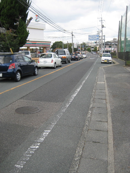 さて、いっときも車の切れ目がない五差路の喧噪から離れると、本路線は幾分路肩部分が広がり通りやすくなる。